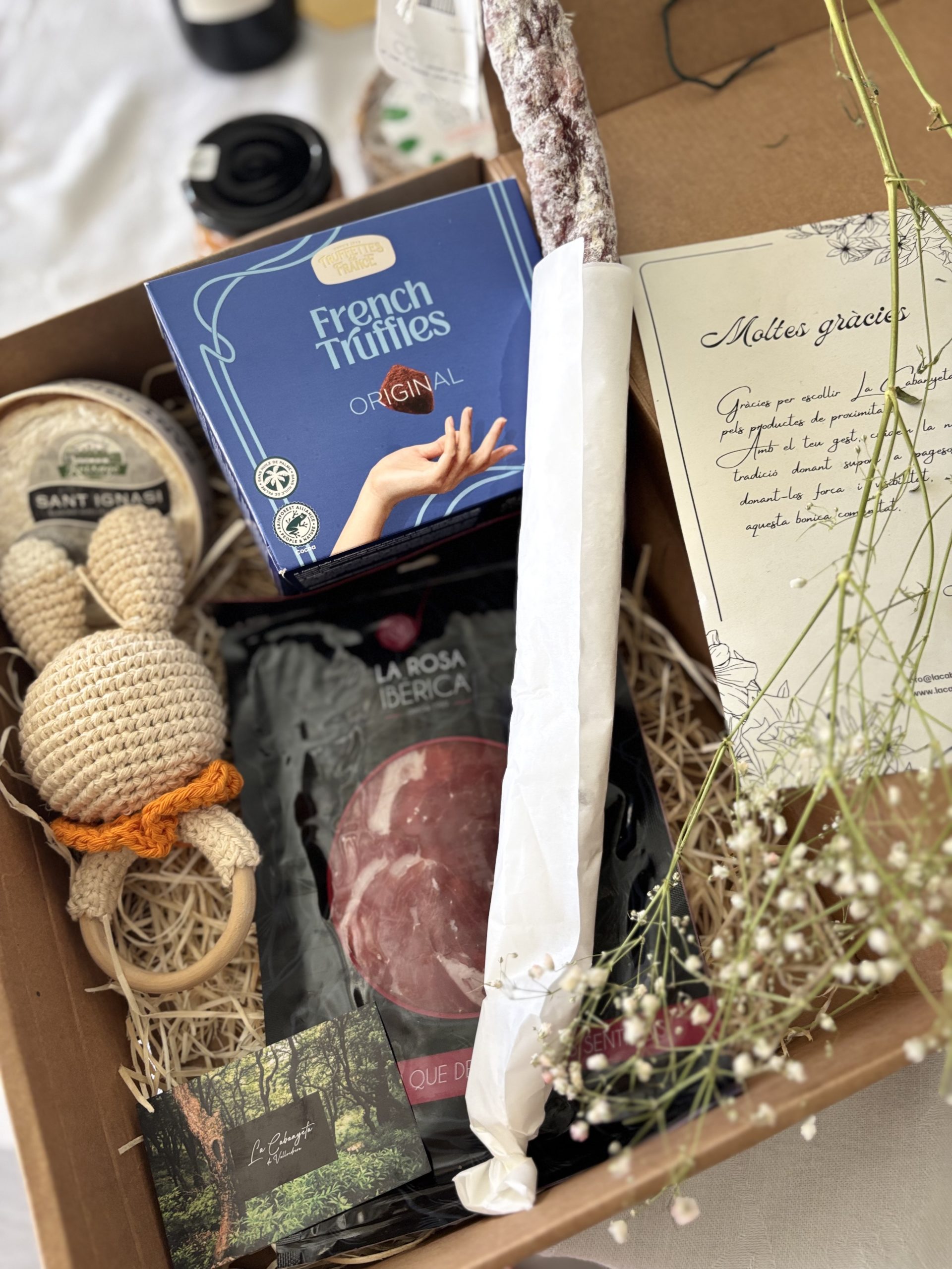 Después del embarazo es una etapa que has estado esperando con muchas ganas. Primero por conocer a tu retoño. Pero no nos engañemos: también echabas de menos el Jamón! Esta cesta es la tuya y qué mejor que te la traigan  al hospital?