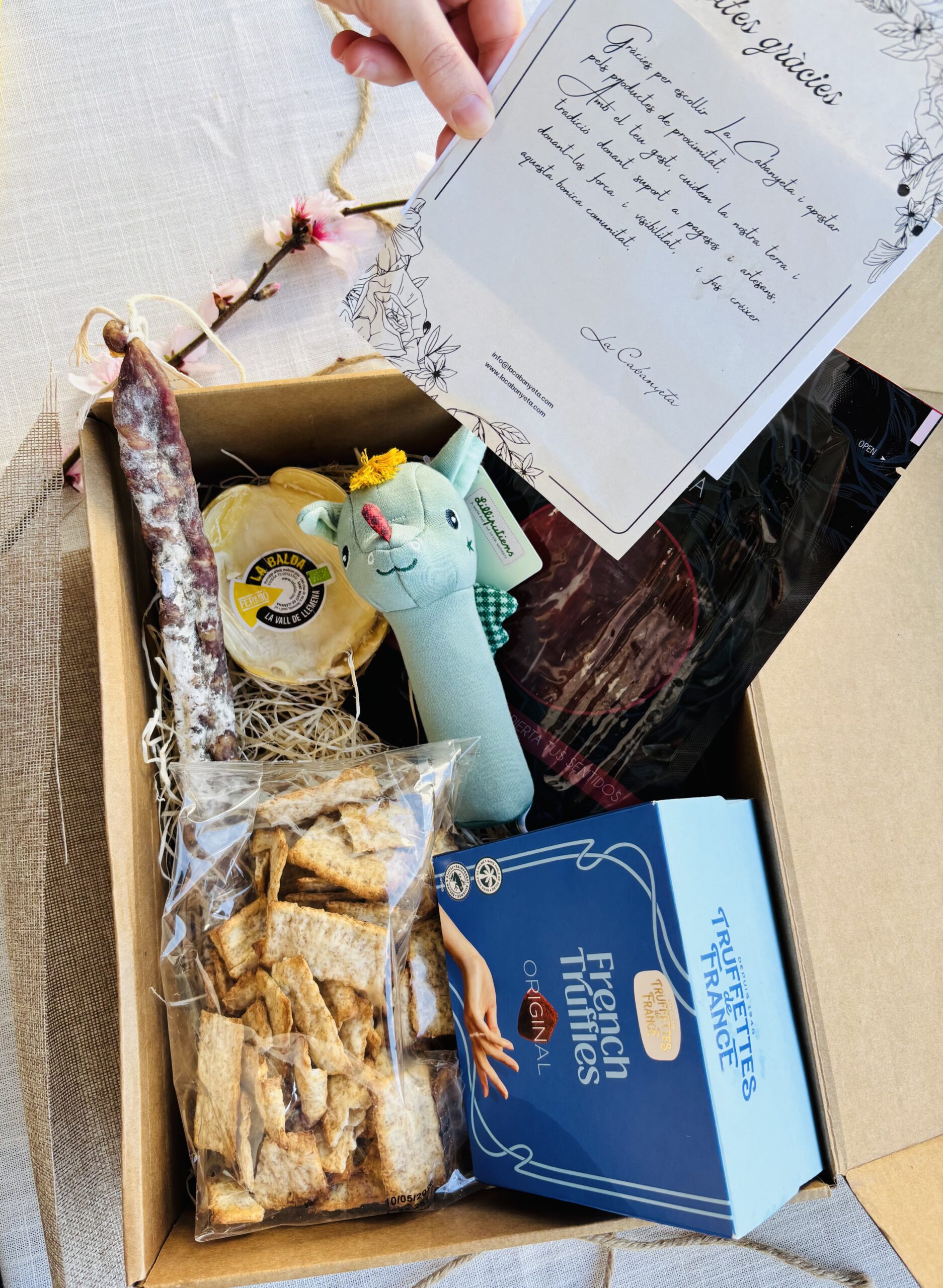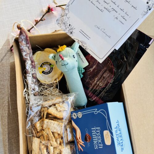 Después de dar vida, todo gira alrededor del bebé. Esta cesta está pensada para recordar que ella también importa. Una selección de sabores que la mami podrá volver a disfrutar tras el embarazo, para saborear sin prisas y sin reloj.